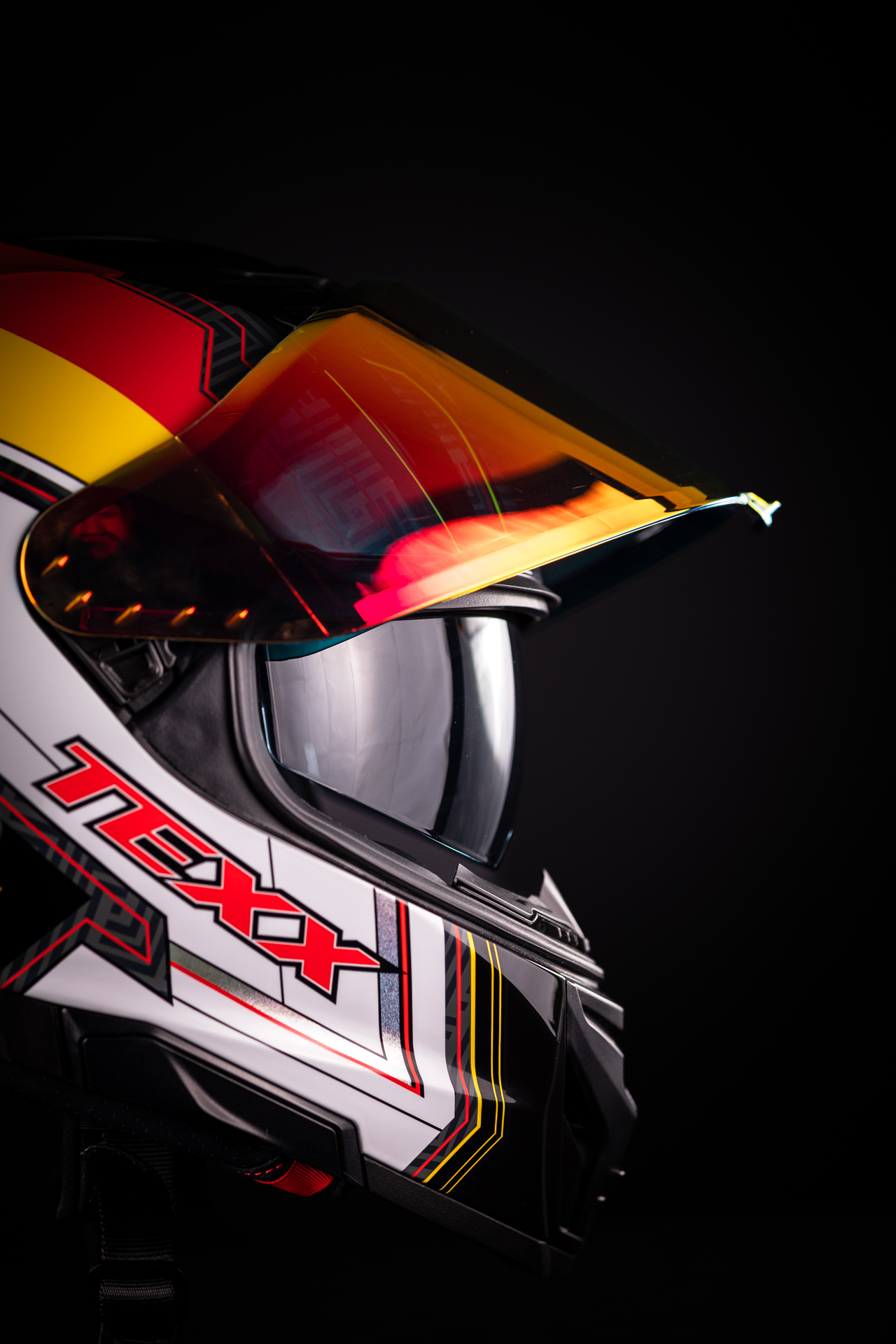 • Tecnologias Tecnologia de viseira dupla nos capacetes, ou seja, óculos internos para proteção dos raios solares.